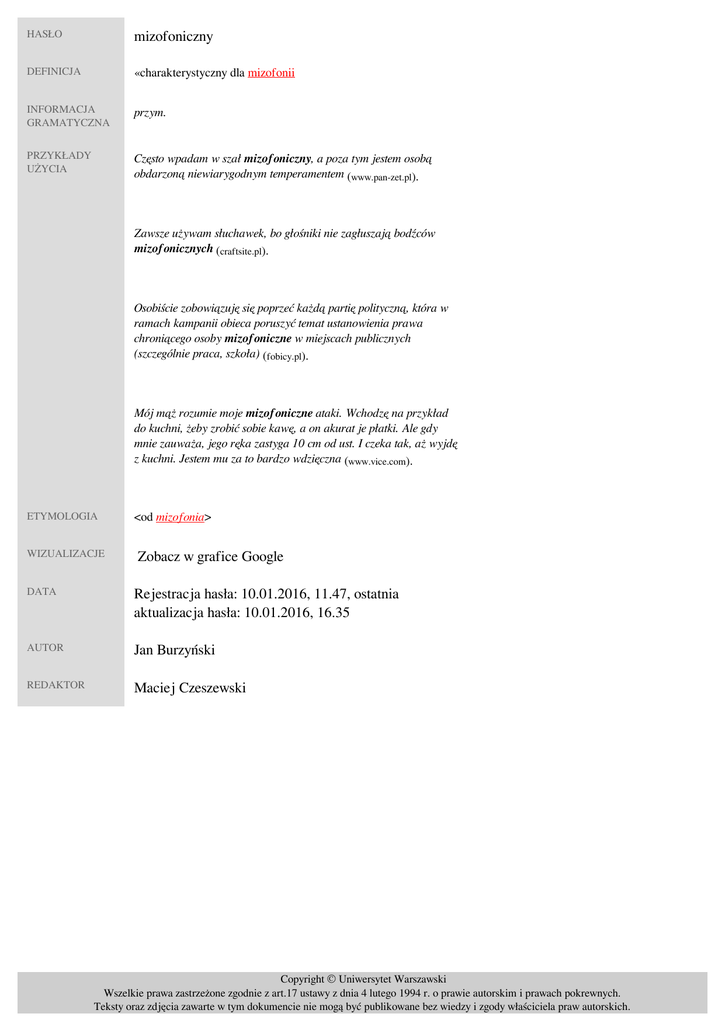mizofoniczny Zobacz w grafice Google Rejestracja