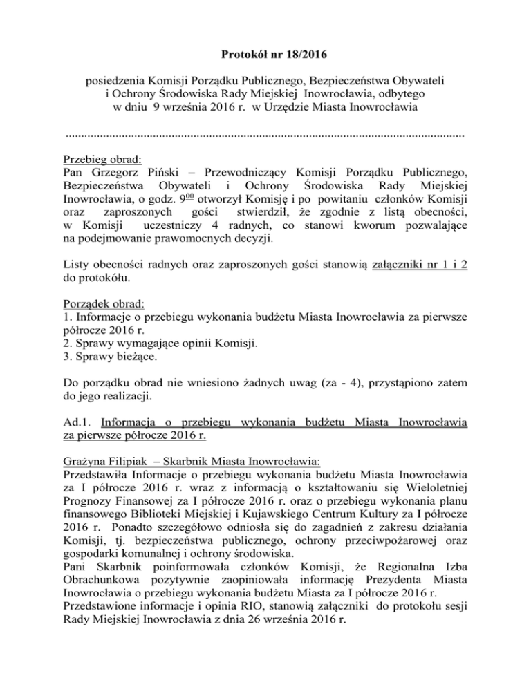 Protokół nr 18/2016 z dnia 9 września 2016 r. - BIP