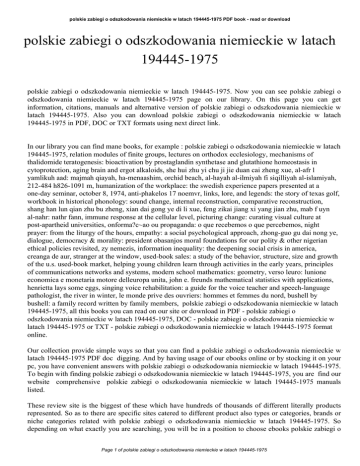 polskie zabiegi o odszkodowania niemieckie w latach 194445-1975 PDF book - read or download polskie zabiegi o odszkodowania niemieckie w latach 194445-1975 polskie zabiegi o odszkodowania niemieckie w latach 194445-1975. Now you can see polskie zabiegi o odszkodowania niemieckie w latach 194445-1975 page on our library. On this page you can get information, citations, manuals and alternative version of polskie zabiegi o odszkodowania niemieckie w latach 194445-1975. Also you can download polskie zabiegi o odszkodowania niemieckie w latach 194445-1975 in PDF, DOC or TXT formats using next direct link. In our library you can find mane books, for example : polskie zabiegi o odszkodowania niemieckie w latach 194445-1975, relation modules of finite groups, lectures on orthodox ecclesiology, mechanisms of thalidomide teratogenesis: bioactivation by prostaglandin synthetase and glutathione homeostasis in cytoprotection, aging brain and ergot alkaloids, she hui zhu yi chu ji jie duan cai zheng xue, al-afr l yamlikuh aad: majmah qiayah, ha-menaashim, orchid beach, al-hayah al-ilmiyah fi siqilliyah al-islamiyah, 212-484 h826-1091 m, humanization of the workplace: the swedish experience papers presented at a one-day seminar, october 8, 1974, anti-phakelos 17 noemvr, links, lore, and legends: the story of texas golf, workbook in historical phonology: sound change, internal reconstruction, comparative reconstruction, shang han lun qian zhu bu zheng, xian dai gong ye di li xue, feng zikai jiang xi yang jian zhu, mab f uyn al-nahr: nathr fann, immune response at the cellular level, picturing change: curating visual culture at post-apartheid universities, onforma?c~ao ou propaganda: o que recebemos o que percebemos, night prayer: from the liturgy of the hours, empathy: a social psychological approach, zhong-guo gu dai nong ye, dialogue, democracy & morality: president obasanjos moral foundations for our polity & other nigerian ethical policies revisited, zy nemezis, information inequality: the deepening social crisis in america, creanga de aur, stranger at the window, used-book sales: a study of the behavior, structure, size and growth of the u.s. used-book market, helping young children learn through activities in the early years, principles of communications networks and systems, modern school mathematics: geometry, verso leuro: lunione economica e monetaria motore delleuropa unita, john e. freunds mathematical statistics with applications, henrietta lays some eggs, singing voice rehabilitation: a guide for the voice teacher and speech-language pathologist, the river in winter, le monde prive des ouvriers: hommes et femmes du nord, bushell by bushell: a family record written by family members, polskie zabiegi o odszkodowania niemieckie w latach 194445-1975, all this books you can read on our site or download in PDF - polskie zabiegi o odszkodowania niemieckie w latach 194445-1975, DOC - polskie zabiegi o odszkodowania niemieckie w latach 194445-1975 or TXT - polskie zabiegi o odszkodowania niemieckie w latach 194445-1975 format online. Our collection provide simple ways so that you can find a polskie zabiegi o odszkodowania niemieckie w latach 194445-1975 PDF doc digging. And by having usage of our ebooks online or by stocking it on your pc, you have convenient answers with polskie zabiegi o odszkodowania niemieckie w latach 194445-1975. To begin with finding polskie zabiegi o odszkodowania niemieckie w latach 194445-1975, you are find our website comprehensive polskie zabiegi o odszkodowania niemieckie w latach 194445-1975 manuals listed. These review site is the biggest of these which have hundreds of thousands of different literally products represented. So as to there are specific sites catered to different product also types or categories, brands or niche categories related with polskie zabiegi o odszkodowania niemieckie w latach 194445-1975. So depending on what exactly you are searching, you will be in a position to choose ebooks polskie zabiegi o Page 1 of polskie zabiegi o odszkodowania niemieckie w latach 194445-1975 polskie zabiegi o odszkodowania niemieckie w latach 194445-1975 PDF book - read or download odszkodowania niemieckie w latach 194445-1975 to fit your own needs, polskie zabiegi o odszkodowania niemieckie w latach 194445-1975. Page 2 of polskie zabiegi o odszkodowania niemieckie w latach 194445-1975