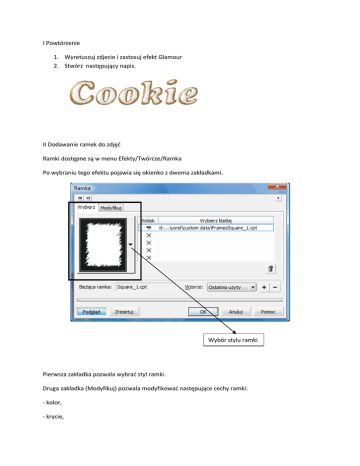 I Powtórzenie 1. Wyretuszuj zdjecie i zastosuj efekt Glamour 2