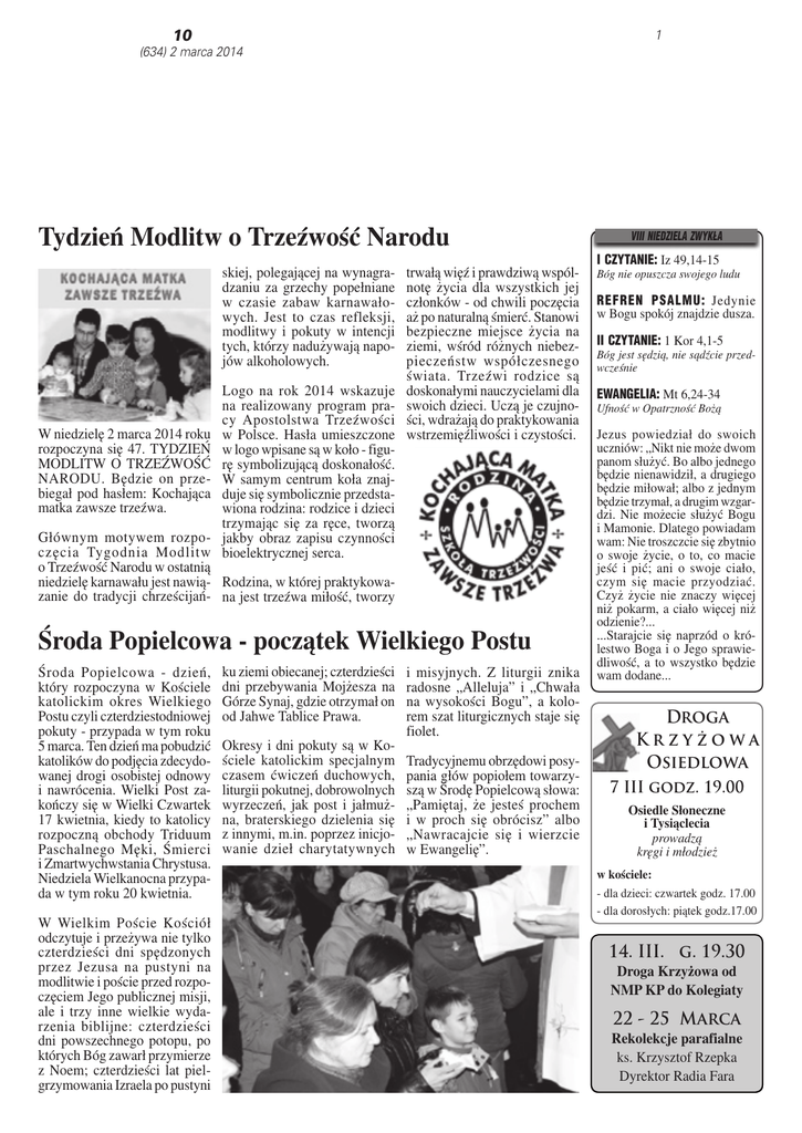 Tydzień Modlitw o Trzeźwość Narodu Środa Popielcowa