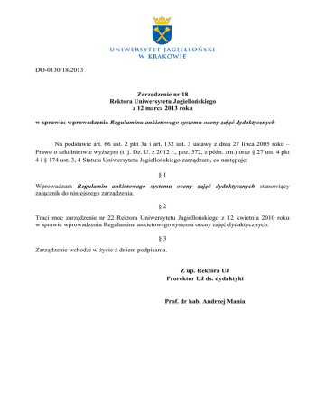 Zarządzenie nr 18 Rektora UJ z 12 marca 2013 roku w