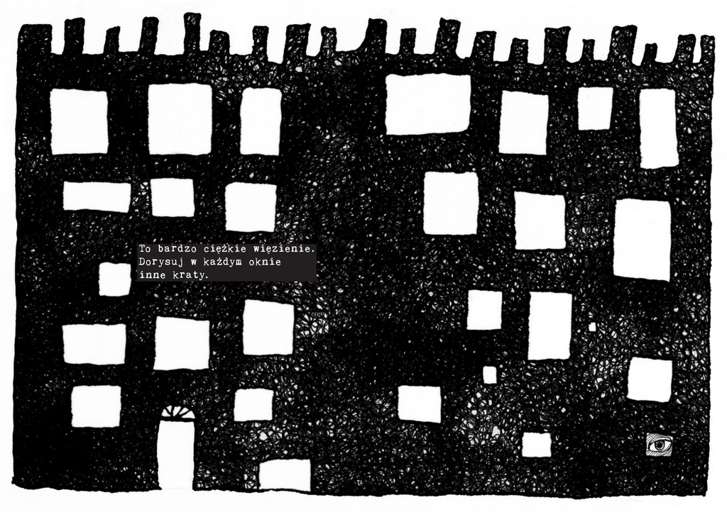 To bardzo ciężkie więzienie. Dorysuj w każdym oknie inne kraty.