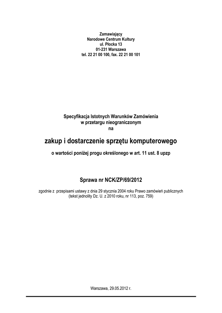 SIWZ komputery 2012 - Narodowe Centrum Kultury