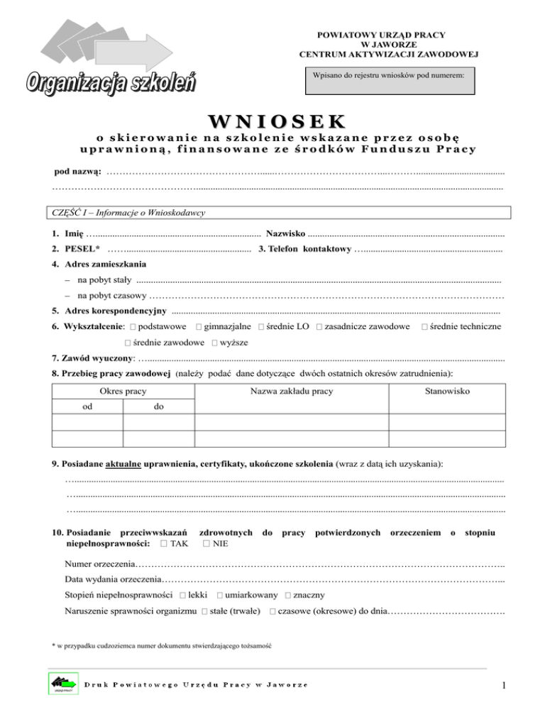 wniosek - PUP Jawor