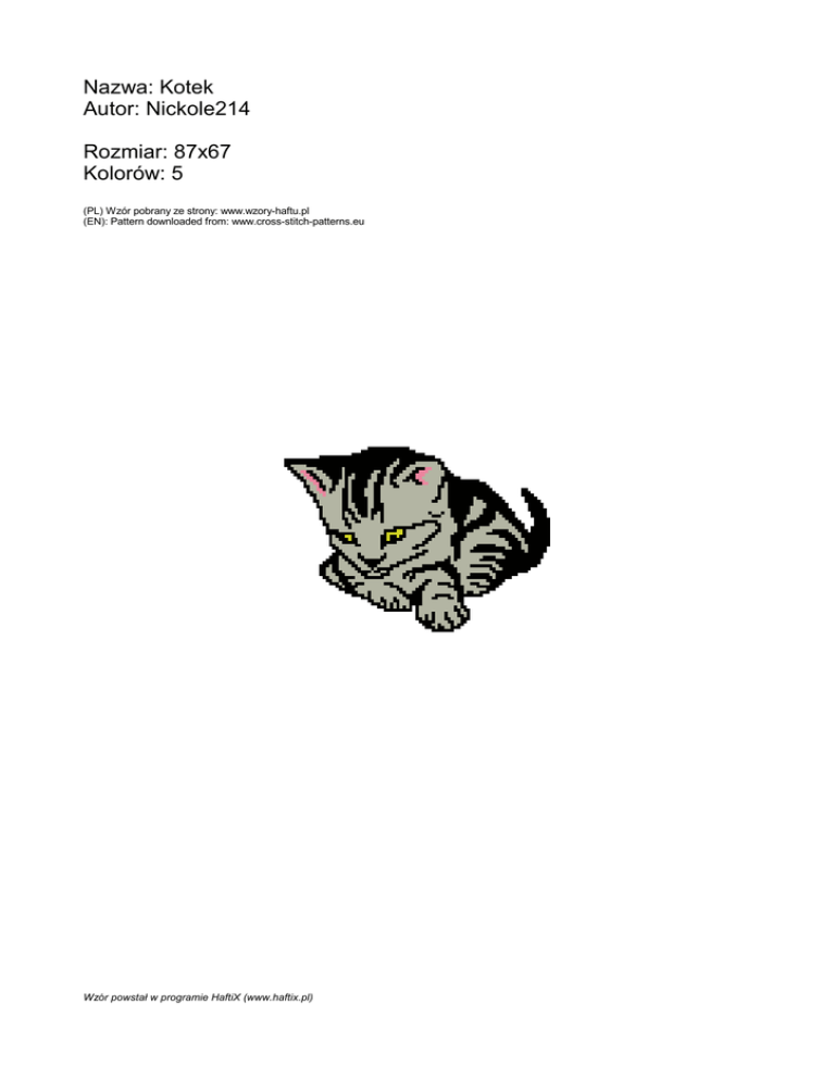 Nazwa: Kotek Autor: Nickole214 Rozmiar: 87x67 Kolorów: 5