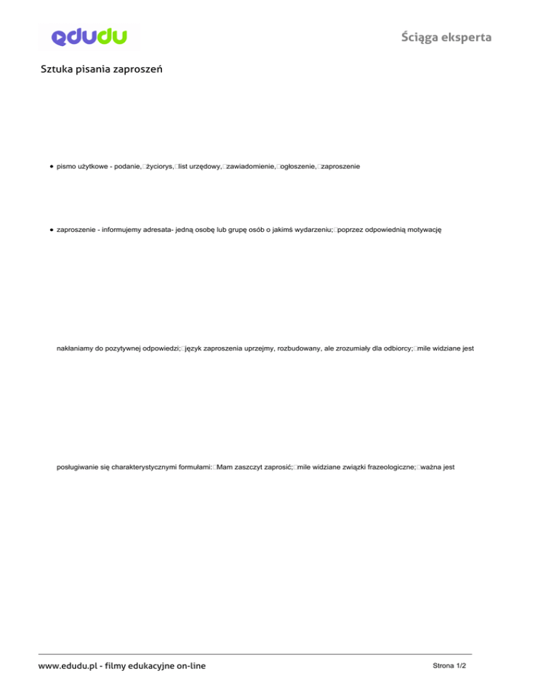 Edudu.pl - Sztuka pisania zaproszeń