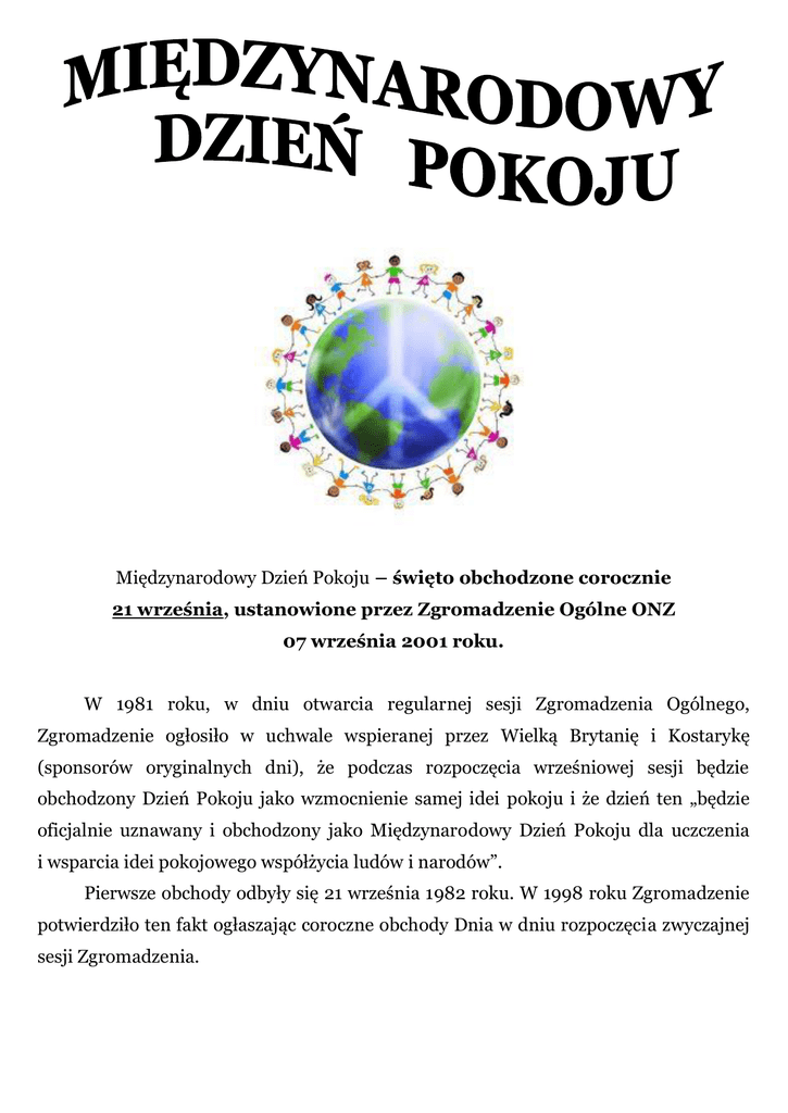 Międzynarodowy Dzień Pokoju – święto obchodzone corocznie 21
