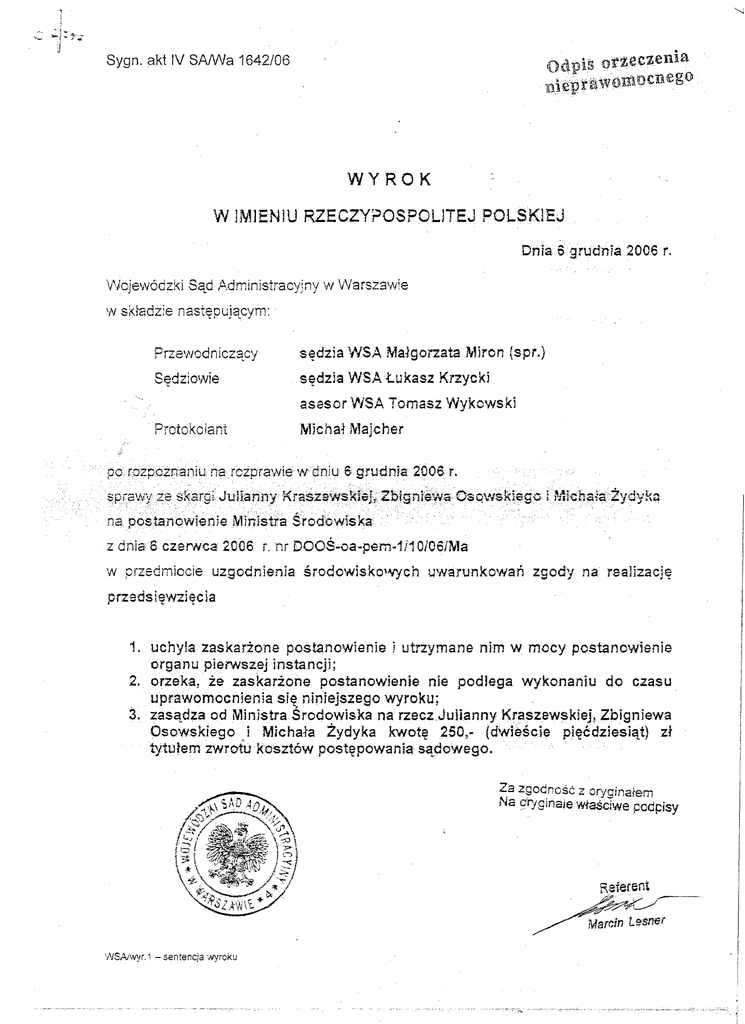 adr?irist;azy;ijryni i Cz.2. >r 153 poz. 1270 zs, zm.)Ssd crzekt jak VI szntencji.