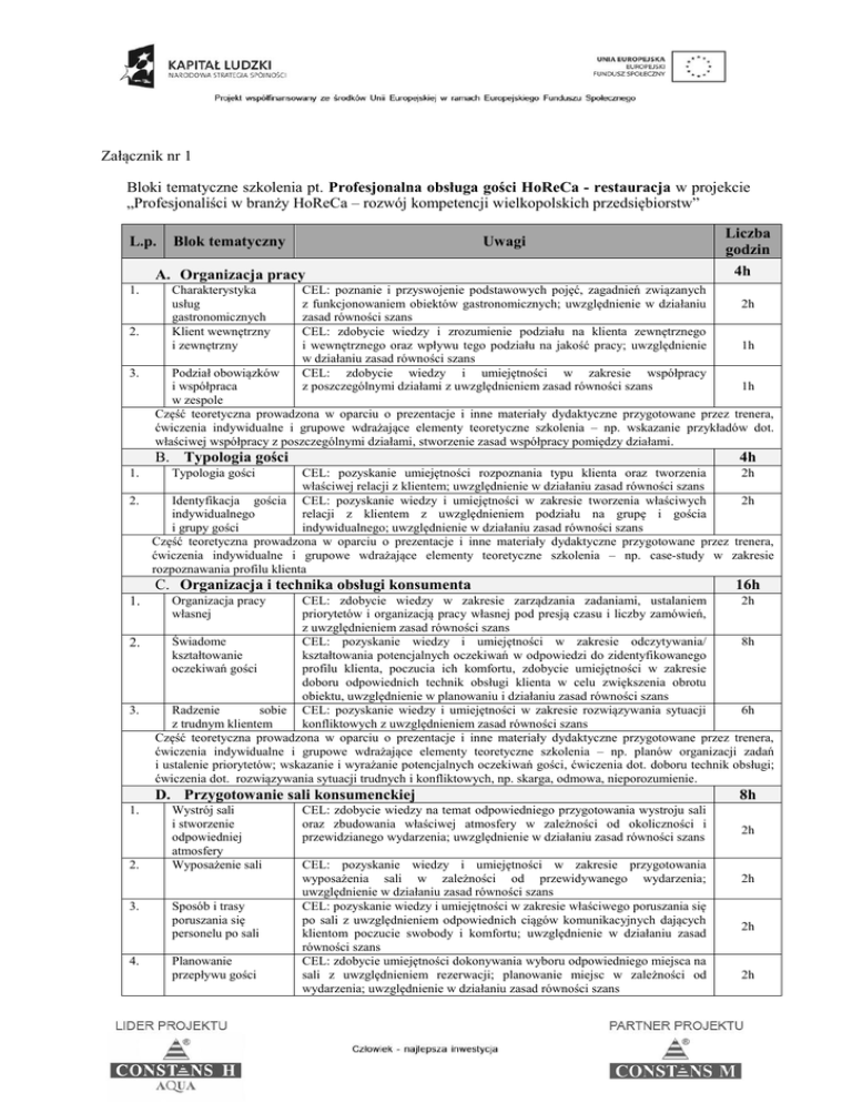 Załącznik nr 1 Bloki tematyczne szkolenia pt. Profesjonalna obsługa