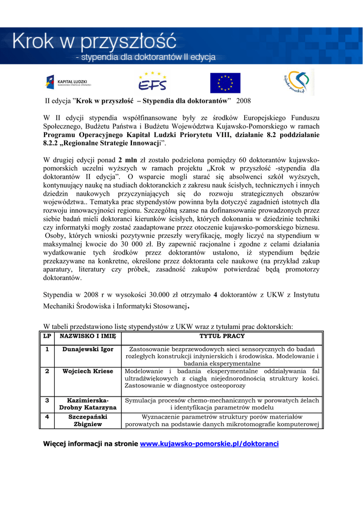 II edycja ”Krok w przyszłość – Stypendia dla doktorantów” 2008 W II