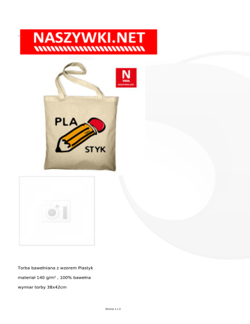 Torba bawełniana z wzorem Plastyk materiał 140 g/m² , 100% bawełna wymiar torby 38x42cm Strona 1 z 2 ucho - ok.70cm Strona 2 z 2
