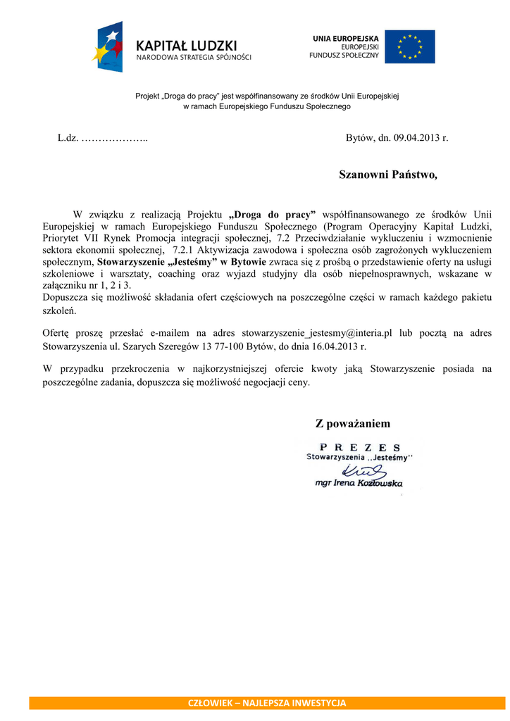 Zapytanie ofertowe - Stowarzyszenie Jesteśmy