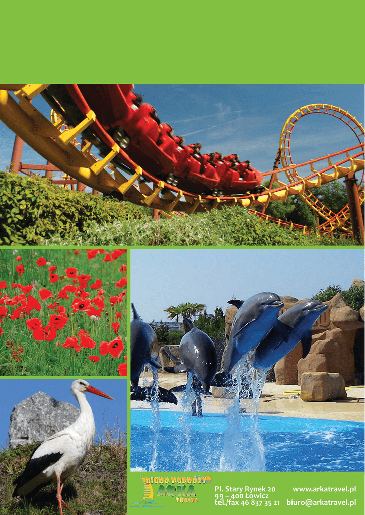Wycieczki Szkolne Pl. Stary Rynek 20 www.arkatravel.pl 99 – 400 Łowicz tel./fax 46 837 35 21 [email protected] Szanowni Państwo, oddajemy w Państwa ręce nasz nowy katalog z ofertami wyjazdów dla dzieci i młodzieży. Zawarliśmy w nim najpopularniejsze propozy cje wycieczek szkolnych krajowych i zagranicznych oraz zielonych szkół. Oferta umieszczona w kata logu jest przykładowa, możemy ją dopasować zgodnie z Państwa su gestią i propozycją. Ceny zawarte w katalogu są skalku lowane dla grup 45 uczestników + 3 opiekunów oraz dla grup 40 ucze stników + 3 opiekunów wyjeżdżają cych z Łowicza i okolic. W przypadku wyjazdu z innego miejsca lub innej ilości osób sporządzimy dla grupy odrębną kalkulację. Ceny wycieczek po Polsce oraz wycieczek z „wizytą u sąsiadów” zawierają transport komfortowym autokarem, opłaty drogowe i parkin gowe, noclegi z wyżywieniem w sprawdzonych ośrodkach, opiekę pilota, przewodników miejscowych, ubezpieczenie NNW i KL, bilety wstępu do zwiedzanych obiektów zgodnie z programem. Z nami podróżujesz bezpiecznie i le galnie. Posiadamy zaświadczenie o wpisie do rejestru organizatorów turystyki nr 201 wydane przez Marszałka Województwa Łódzkie go. Jesteśmy wpisani do Centralnej Ewidencji Organizatorów Turystyki www.turystyka.gov.pl ( nr 5755 ). Po siadamy gwarancję ubezpieczenio wą wydaną przez Signal Iduna Polska na kwotę 641 862,20 zł. 4 Dla Państwa wygody, chętnie przy jedziemy na spotkanie do szkoły w celu uzgodnienia szczegółów wyjazdu oraz podpisania umowy. Na życzenie rodziców wystawiamy faktury. Zapraszamy do wspólnego podróżowania. B.P. „Arka Travel” www.arkatravel.pl BIURO PODRÓŻY ARKA TRAVEL Czynne: od poniedziałku do piątku w godzinach 9 – 17.00. Kontakt: 99 – 400 Łowicz Pl. Stary Rynek 20 (budynek Kurii Diecezjalnej, obok księgarni) Tel./fax: 46 837 35 21 Mail: [email protected] Organizujemy również: • Wycieczki dla nauczycieli • Wycieczki dla firm, instytucji • Pielgrzymki • Kolonie i obozy młodzieżowe W cenie wycieczki: transport autokarem, opieka pilota/przewodnika, ubezpieczenie NNW, bilety wstępu ŁÓDŹ dla najmłodszych Muzeum Bajki (dekoracje, sceno grafie, lalki z polskich filmów ani mowanych, pokaz krótkich filmów animowanych dla dzieci). Spacer szlakiem pomników bajkowych: Plastuś, Mis Uszatek, bohaterowie „Zaczarowanego ołówka”, Koty File mon i Bonifacy, wizyta w Zoo. Cena/os.: 45 os. – 65 zł 40 os. – 70 zł Poznańskiego – centrum handlowo – kulturalne Manufaktura. Cena/os.: 45 os. – 60 zł 40 os. – 65 zł LITERACKIM SZLAKIEM PO ŁODZI Pałac Izraela Poznańskiego – pałac jednego z najbogatszych łódzkich fabrykantów, spacer po terenie dawnej fabryki – dzisiejszej Manufa ktury. Spojrzenie na fabrykę oczami Reymonta i Singera, porównanie literackiego opisu z kadrami z filmu Andrzeja Wajdy; przejazd obok domu Tuwima na ul. Andrzeja Struga oraz spacer po ul. Piotrkowskiej od Grand Hotelu do „Ławeczki Tuwima” i dalej do Parku Sienkiewicza, dawne gim nazjum męskie; Cmentarz Żydowski: zabytkowe macewy, groby fabry kantów, grób rodziców Juliana Tuwi ma. Cena/os.: 45 os. – 60 zł 40 os. – 65 zł WYCIECZKI Jednodniowe WARSZAWA ŚLADAMI LEGEND Stare Miasto, pełne jest legend i dzi wnych opowieści. Podczas spaceru najmłodsi odwiedzą najciekawsze zakamarki najstarszej części miasta: Plac Zamkowy, Kolumna Zygmun ta, Zamek Królewski (z zew.), Rynek Starego Miasta, przejazd Kolejką Staromiejska z Placu Zamkowego Traktem Królewskim; przejazd przez Plac Piłsudskiego z Grobem Nieznanego Żołnierza, Łazienki – spacer po parku. Lotnisko Chopina – wjazd na oszklony i zadaszony taras widokowy. Cena/os.: 45 os. – 70 zł 40 os. – 75 zł WARSZAWA SZLAKIEM POWSTANIA WARSZAWSKIEGO ŁÓDŹ dla aktywnych Experymentarium – nauka przez za bawę, interaktywne stanowiska, nie zwykłe eksperymenty, kosmiczny tunel, wystawy czasowe; Arena Laser Games – integracyjna, nowo czesna gra, w której liczy się głównie inteligencja, wspaniała lekcja wy chowania fizycznego, Muzeum Fabryki – muzeum poświęcone hi storii zakładów włókienniczych stworzonych przez Izraela Poznań skiego. Gra ekonomiczna „Łódzkie fortuny fabrykantów” – uczestnicy w oparciu o opracowane specjalne rekwizyty handlują, zarabiają, tworzą swoje przedsiębiorstwa. Cena/os.: 45 os. – 80 zł 40 os. – 85 zł Muzeum Powstania Warszawskiego; Stare Miasto; Plac Krasińskich, Cmen tarz Wojskowy – Powązki. Cena/os.: 45 os. – 60 zł 40 os. – 65 zł ŁÓDŹ nowe oblicze miasta ŁÓDŹ PRZEMYSŁOWA Księży Młyn – osiedle robotnicze i kompleks fabryczny Karola Schei blera; Muzeum Historii Włókien nictwa „Biała Fabryka”, Skansen Łódzkiej Architektury Drewnianej – obiekty z przełomu XIX i XX w, domy rzemieślników; imperium Izraela Port Lotniczy im. Władysława Reymonta – zapoznanie z zasada mi funkcjonowania lotniska, prze jażdżka lotniskowym autobusem, pokaz startu i lądowania samolotu, poznanie specyfiki pracy służb lotni skowych – Lotniskowa Straż Pożar na, Służba Ochrony Lotniska; Atlas Arena – zwiedzanie; 2 godzinna ra dość wodnego szaleństwa w Aquaparku „Fala”. Cena/os.: 45 os. – 80 zł 40 os. – 85 zł Szczegółowe programy dostępne w biurze tel. (+48) 46 837 35 21 WARSZAWA: HISTORIA POLSKIEGO PARLAMENTARYZMU Zwiedzanie Gmachu Sejmu i Se natu RP połączone z prelekcją; Zamek Królewski – Apartament Wielki i Królewski, Galeria Czterech Pór Roku, Nowa Izba Poselska, Sala Senatorska, Pokoje Matejkowskie, Wielka Antyszambra; Stare Miasto – kolumna Zygmunta, Rynek Starego 5 WYCIECZKI Jednodniowe W cenie wycieczki: transport autokarem, opieka pilota/przewodnika, ubezpieczenie NNW, bilety wstępu Miasta, spacer Krakowskim Przed mieściem. Cena/os.: 45 os. – 75 zł 40 os. – 80 zł bacz jak wygląda Strefa Zawodnicza, poznaj zakamarki piłkarskiej sza tni, wejdź na płytę boiska;