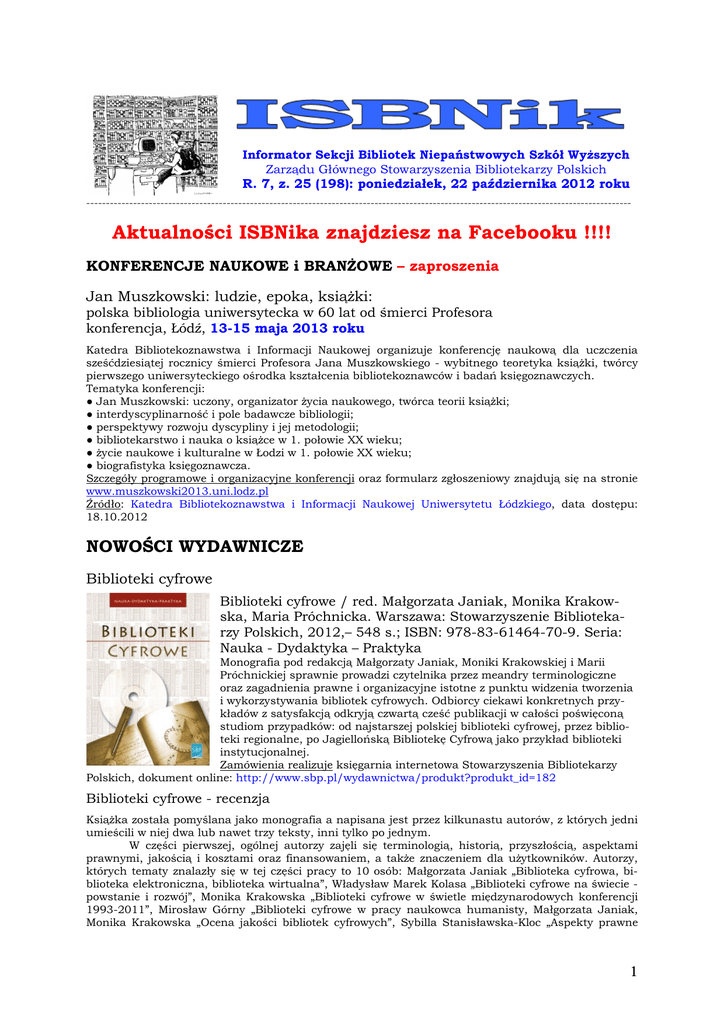 Aktualności ISBNika znajdziesz na Facebooku - Biblioteka WSB-NLU