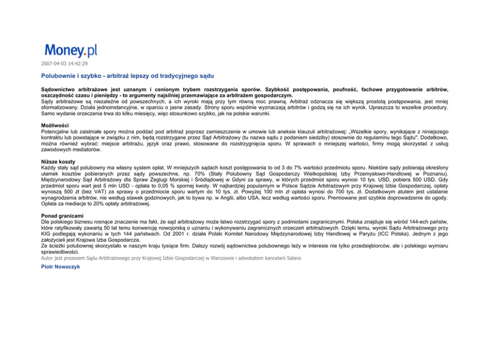 Money.pl - Sąd Arbitrażowy przy Krajowej Izbie Gospodarczej w