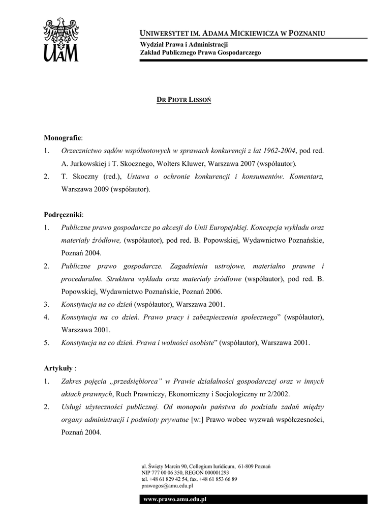 Publikacje - dr Piotr Lissoń - Wydział Prawa i Administracji UAM