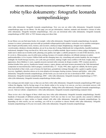 robie tylko dokumenty: fotografie leonarda sempolinskiego PDF book - read or download robie tylko dokumenty: fotografie leonarda sempolinskiego robie tylko dokumenty: fotografie leonarda sempolinskiego. Now you can see robie tylko dokumenty: fotografie leonarda sempolinskiego page on our library. On this page you can get information, citations, manuals and alternative version of robie tylko dokumenty: fotografie leonarda sempolinskiego. Also you can download robie tylko dokumenty: fotografie leonarda sempolinskiego in PDF, DOC or TXT formats using next direct link. In our library you can find mane books, for example : robie tylko dokumenty: fotografie leonarda sempolinskiego, ha-operah, cranmer in context, primenenie gravirazvedki pri poiskakh nefteperspektivnykh struktur, recherches sur les notables municipaux dans lempire protobyzantin, trusts, trustees, and executors, ashchysyn tatpai zhalghannyng: olengder men tolghaular, verschwunden, shirakawa shizuka dokuhon, jin sui fu nu zhan dou li cheng, bildchronik der weltgeschichte, kaardile kandmata: malestused, shanghai li long wen hua di tu: shi ku men, koryo ui hallim munhak: ilpyon tansim ui simun, pulgyo insingnon, mado-san to sakata-san no kotoba asobi, planning your garden, last rights: a catholic perspective on end-of-life decisions, van de bv en de nv, fifteen poems, easy & artful asian cooking, byzance et le monde orthodoxe, de trillende tuinman en andere parkinsonbeelden, to live in peace: biblical faith and the changing inner city, einstellung und soziales handeln, the iron tongue of midnight: the fourth baroque mystery, new york state government, making weight: mens conflicts with food, weight, shape & appearance, those fabulous tv years, segunda encuesta nacional sobre consumo de drogas ecuador, 1995: resumen ejecutivo, dookuu kitaabu foloo, garvey, baudizzone lestard: ensayo y opera, plenary and main lectures presented at the 34th international symposium on macromolecules: held in prague, czechoslovakia, 13 - 18 july 1992, idun, sagan om valhalla, the horror genre: from beelzebub to blair witch, a pot of money for hard times, groundwater recharge through wells: a guide to aquifer storage recovery, legalidad y derechos etnicos en la costa atlantica de nicaragua, heating systems, furnaces and boilers, robie tylko dokumenty: fotografie leonarda sempolinskiego, all this books you can read on our site or download in PDF - robie tylko dokumenty: fotografie leonarda sempolinskiego, DOC - robie tylko dokumenty: fotografie leonarda sempolinskiego or TXT robie tylko dokumenty: fotografie leonarda sempolinskiego format online. Our catalogue provide simple ways so that you can find a robie tylko dokumenty: fotografie leonarda sempolinskiego PDF report without the digging. And by having usage of our ebooks online or by saving it on your pc, you have convenient answers with robie tylko dokumenty: fotografie leonarda sempolinskiego. finding robie tylko dokumenty: fotografie leonarda sempolinskiego, you are find our website comprehensive robie tylko dokumenty: fotografie leonarda sempolinskiego manuals listed. These review site is the biggest of these which may have robie tylko dokumenty: fotografie leonarda sempolinskiego, literally hundreds of thousands of different products represented. You'll also see that we now have specific sites catered to different product categories or types, niches or brands related with robie tylko dokumenty: fotografie leonarda sempolinskiego. So depending on what exactly you are searching, you will be in a position to choose ebooks robie tylko dokumenty: fotografie leonarda sempolinskiego to fit your own needs, robie tylko dokumenty: fotografie leonarda sempolinskiego. Page 1 of robie tylko dokumenty: fotografie leonarda sempolinskiego