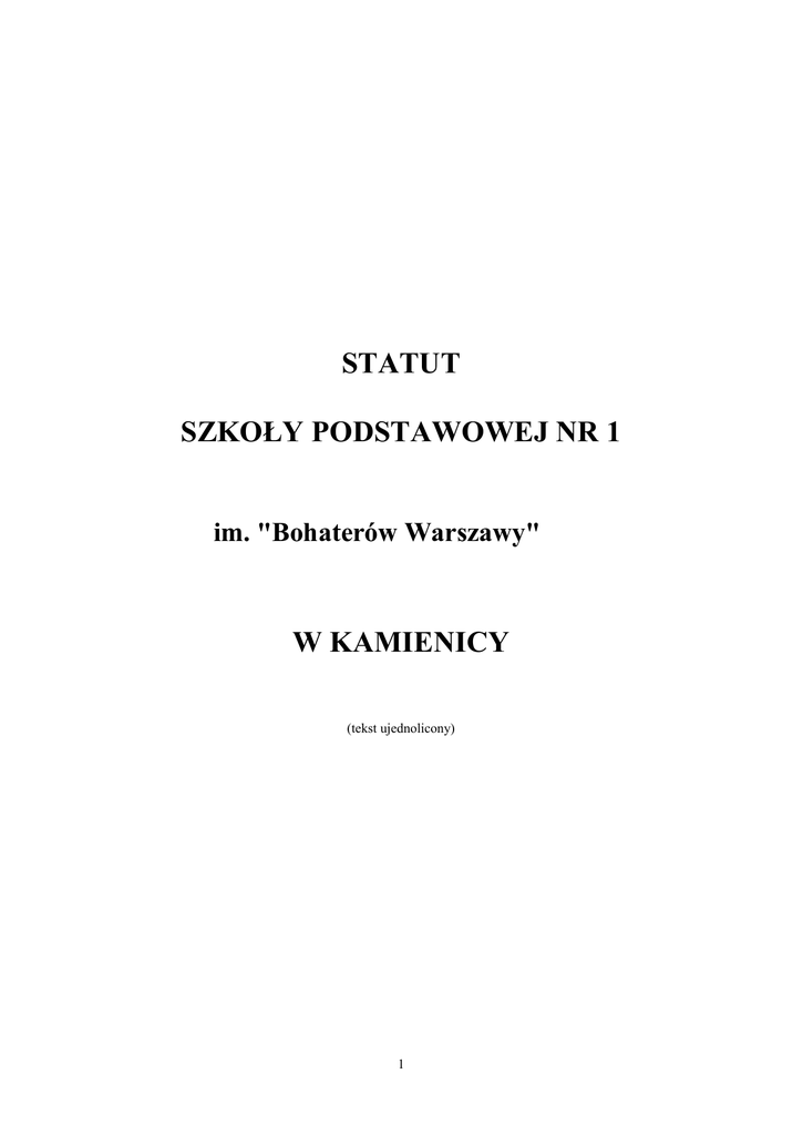 „ Szkoła Podstawowa Nr 1 im. Bohaterów Warszawy w Kamienicy”.