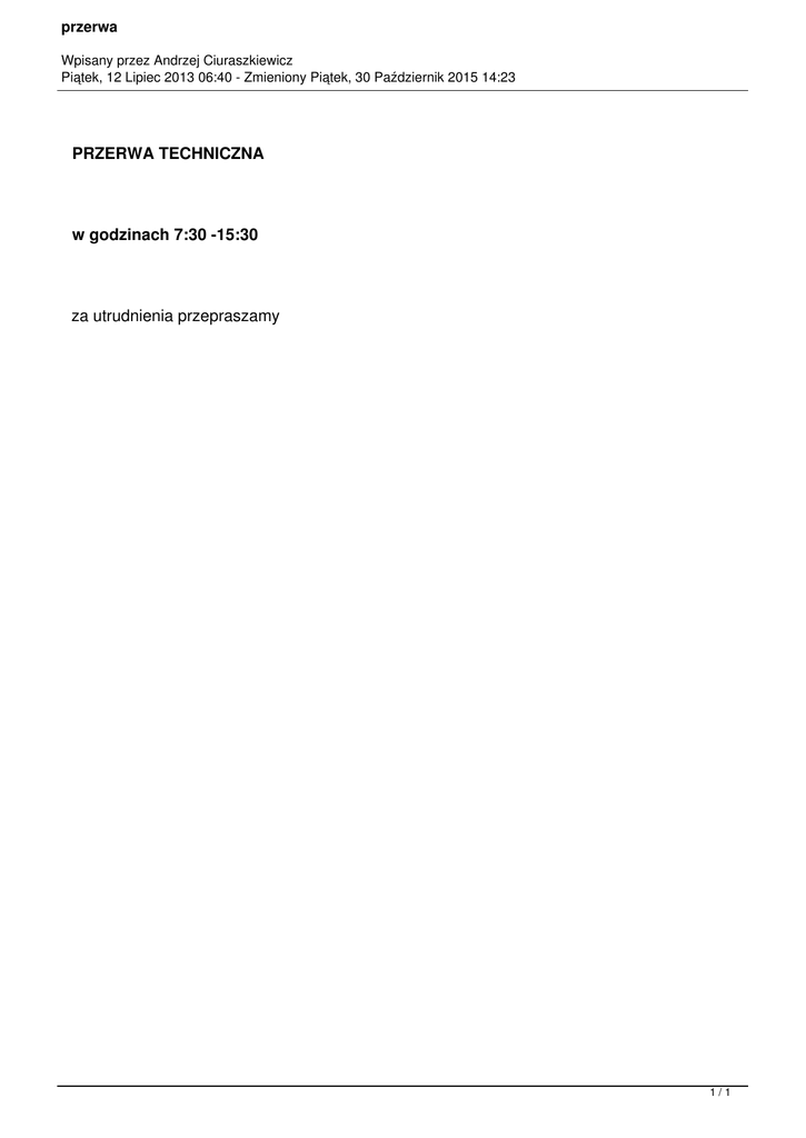 PRZERWA TECHNICZNA w godzinach 7:30