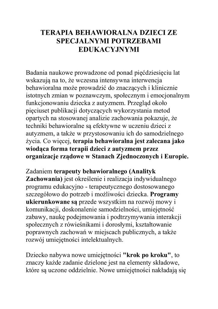 terapia behawioralna dzieci ze specjalnymi potrzebami edukacyjnymi