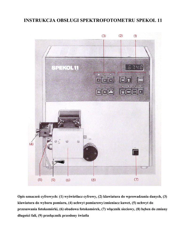 INSTRUKCJA OBSŁUGI SPEKTROFOTOMETRU SPEKOL 11