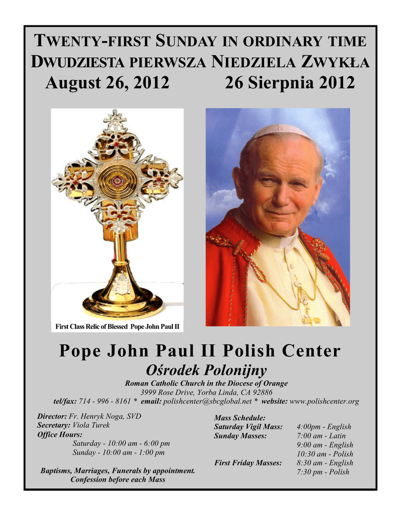 Pope John Paul II Polish Center August 26, 2012 26 Sierpnia 2012