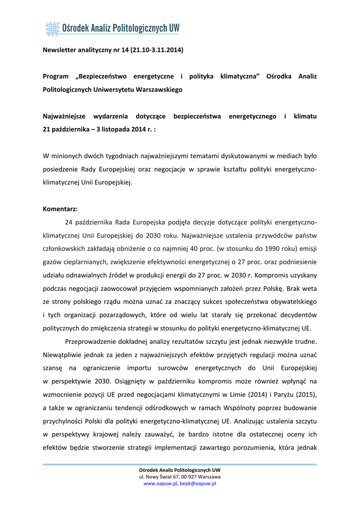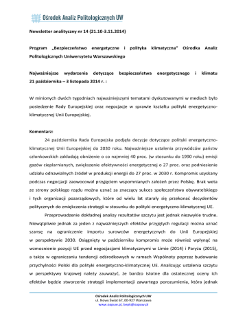 Newsletter analityczny nr 14 - Ośrodek Analiz Politologicznych UW