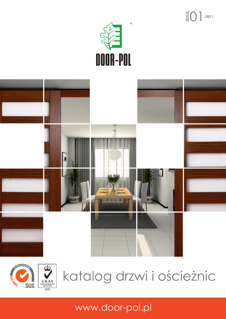 EDYCJA 01 /2011 katalog drzwi i ościeżnic www.door-pol.pl Jesteśmy z Państwem od 20 lat... Wysoka jakość, niska cena, atrakcyjne wzornictwo, krótkie terminy realizacji i zadowolenia klienta. Od wielu lat są znakami szczególnymi, które wyróżniają firmę Door-Pol spośród pozostałych producentów drzwi w Polsce oraz wyznacznikiem profesjonalizmu i jakości zapewniając Państwu drzwi do mieszkań, biur czy obiektów użyteczności publicznej Firma Door-Pol Sp. z o.o. obecna na rynku Polskim i Europejskim, w bieżącym roku, wyraźnie umacniała swoją pozycję. Jako wyznacznik nowej ery w produkcji stolarki drzwiowej uruchomiliśmy jedną z najnowocześniejszych fabryk w Unii Europejskiej, położoną w Strefie Ekonomicznej “ Żarnowiec” posiadającą w pełni zautomatyzowaną linię technologiczną. Gwarantuje to naszym produktom atrakcyjną cenę i bardzo wysoką jakość wykonania, potwierdzaną międzynarodowym certyfikatem jakości ISO 9001:2009. Drzwi to, nieodzowny element każdego pomieszczenia. Współgrając z jego aranżacją, czy wyposażeniem nadają mu charakter i poczucie idealnego smaku. Ich odpowiedni wybór jest niezmiernie ważny. Na codzień, spędzamy z nimi dużo czasu. Drzwi stają się częścią każdego z nas. Nasze, mają to coś aby je pokochać. Nasze drzwi zostały kolorystycznie dopasowane do kolorystyki wyrobów większości producentów mebli i podłóg. Ułatwi to Państwu dobór do istniejących już wnętrz lub dopasowanie do nowych projektów. Uniwersalne wzornictwo oraz wachlarz kolorów, powoduje że prezentowane drzwi idealnie współgrają z praktycznie każdym rodzajem czy wystrojem wnętrza. Wraz z ukazaniem się tego katalogu przedstawiamy Państwu najnowszą kolekcję drzwi o nazwie IMPRESJA, która stanowi innowację wzorniczą wyznaczając nowe trendy w produkcji drzwi. Oryginalność kolekcji została dodatkowo potwierdzona zastrzeżeniem jej wzorów przemysłowych przez Urząd Patentowy. Żadne słowa nie oddadzą jednak w pełni prawdziwego obrazu, dlatego też zapraszamy do salonów naszych autoryzowanych dealerów i partnerów handlowych. Ich sprzedawcy na miejscu zaprezentują nasze wyroby, podpowiedzą, doradzą i zamówią dla Państwa drzwi, które bedą idealnym dopełnieniem wystroju w Państwa pomieszczeniach. Oddajemy w Państwa ręce ten katalog, abyście w zaciszu mogli dokonać właściwego wyboru. Zapraszam serdecznie Prezes Zarządu 2 SPIS TREŚCI wykaz modeli www.door-pol.pl Drzwi wewnętrzne okleinowe - kolekcja IMPRESJA MOLEDO ..................................................................................... 4 AVILLA .......................................................................................... 6 TINEO .......................................................................................... 8 SINTRA ........................................................................................ 10 ESPERA ....................................................................................... 12 VERA .......................................................................................... 14 Drzwi modułowe KORSYKA ................................................................................... 16 Drzwi wewnętrzne ramiakowe BORNEO .................................................................................... 18 JAMAJKA ................................................................................... 20 Drzwi wewnętrzne okleinowe MORENA ................................................................................... 22 TOLEDO ..................................................................................... 24 SEVILLA ...................................................................................... 26 LIZBONA .................................................................................... 28 DECO ........................................................................................ 30 MADRYT .................................................................................... 32 MANHATTAN ............................................................................. 34 LUX DOOR PANEL ................................................................... 36 LUX DOOR ................................................................................ 36 Drzwi wewnętrzne malowane CLASSIC .................................................................................... 37 VIGO ......................................................................................... 38 MINI DOOR ............................................................................... 38 Systemy przesuwne Drzwi przesuwne ....................................................................... 40 Drzwi wewnętrzne wejściowe i przeciwpożarowe IMPERO ..................................................................................... 41 DIORYT ....................................................................................... 41 Informacje techniczne i cennik dopłat Wymiary .................................................................................... 42 Ościeżnice ................................................................................. 43 3 skrzydła okleinowe MOLEDO softline MOLEDO 1 Dostępne kolory: GRAFIT 201 ORZECH NIAGARA 203 AKACJA 202 WENGE RETRO 204 WIĄZ 205 brutto: 399,75 netto: 325,dostępne w wymiarach: 60*, 70, 80, 90,100* cm wersja przesuwna wersja dwuskrzydłowa 4 pojedyncze skrzydło Dostępne wersje skrzydła okleinowe www.door-pol.pl MOLEDO 2 MOLEDO 3 MOLEDO 4 brutto: brutto: brutto: 399,75 399,75 399,75 netto: netto: netto: 325,- 325,- 325,- dostępne w wymiarach: 60*, 70, 80, 90,100* cm Konstrukcja skrzydła: • Ramiak wykonany jest z wysokiej jakości MDF • Wypełnienie stabilizujące stanowi tzw. plaster miodu Wykończenie: • Skrzydło pokryte jest okleiną drewnopodobną • W celu zapewnienia wyższych walorów estetycznych i użytkowych, krawędzie skrzy