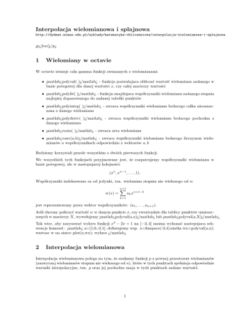 Interpolacja wielomianowa i splajnowa 1 Wielomiany w
