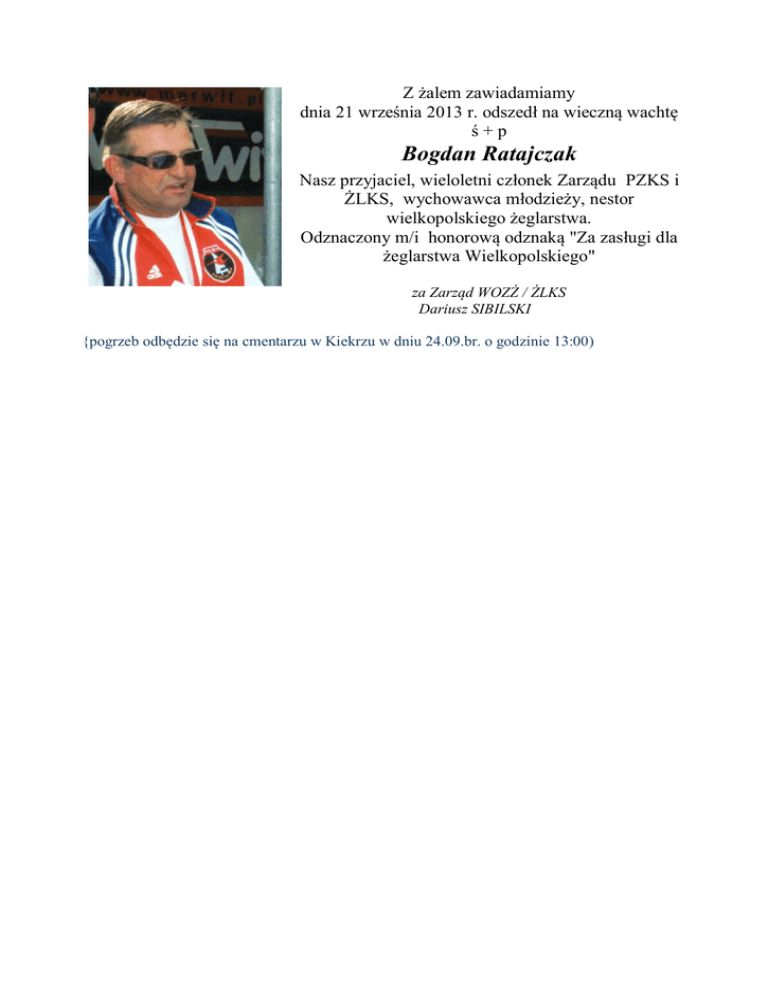 {pogrzeb odbędzie się na cmentarzu w Kiekrzu w dniu 24.09.br. o godzinie 13:00)