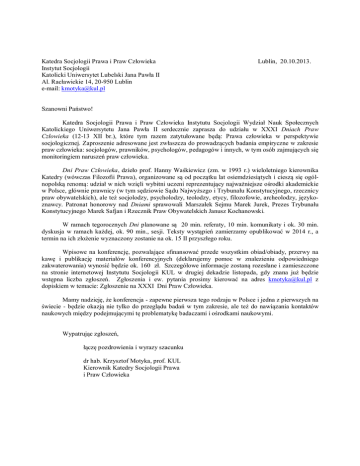 Katedra Socjologii Prawa i Praw Człowieka Lublin, 20.10.2013