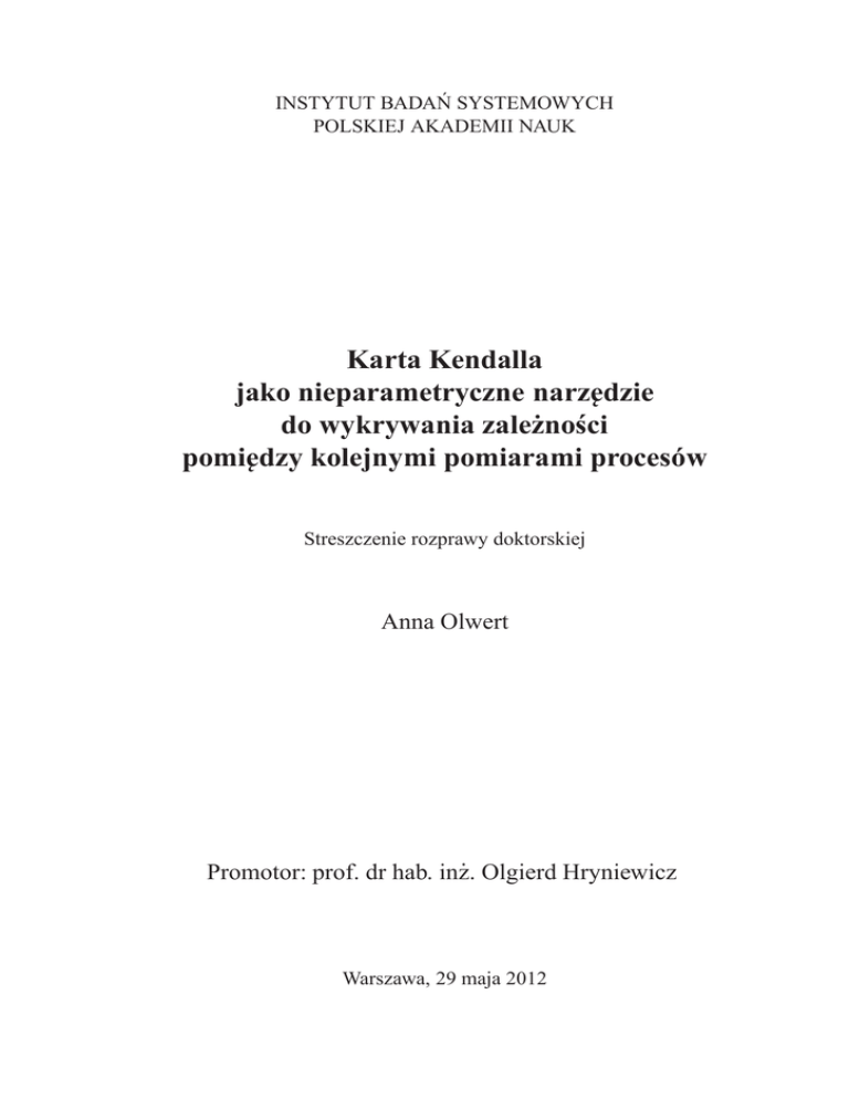 [21] Hryniewicz O., Szediw (Olwert) A. (2008b), Fuzzy Kendall τ Statistic for Autocorrelated
