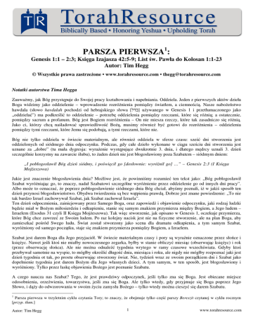 Tim Hegg - Rozważania na temat Parszy nr 1 w