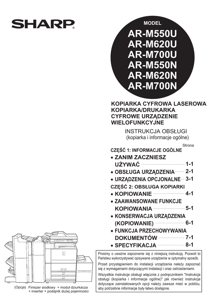 INSTRUKCJA OBSŁUGI (kopiarka i informacje ogólne)