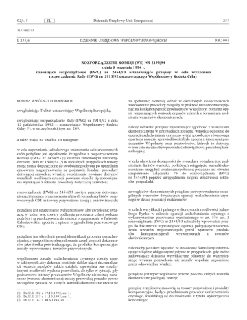 (WE) NR 2193/94 z dnia 8 września 1994 r. zm