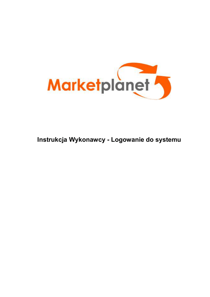 Instrukcja Wykonawcy - Logowanie do systemu 1. Logowanie do systemu Aby zalogować się do systemu, należy kliknąć na link Zaloguj dostępny w górnym prawym rogu nagłówka systemu. Zalogowanie do systemu jest niezbędne do złożenia oferty (przystapienia do aukcji/licytacji). Rysunek 1 Strona główna Platformy Po wykonaniu powyższej operacji otwarty zostanie ekran logowania: Rysunek 2 Ekran logowania Przy logowaniu, w okienkach z napisami: Login oraz Hasło należy wpisać odpowiednie dane oraz nacisnąć przycisk Zaloguj. Instrukcja wykonawcy – Logowanie Marketplanet Strona - 2 1.1 Pierwsze logowanie do systemu Przy pierwszym logowaniu, w okienkach Login oraz Hasło należy wpisać otrzymane e-mailem odpowiednie dane (login oraz hasło) oraz nacisnąć przycisk Zaloguj. Przy pierwszym logowaniu do systemu system poprosi o zmianę hasła. W tym celu należy wypełnić odpowiednie pola na ekranie widocznym na rysunku poniżej. Należy pamiętać, że hasło powinno mieć przynajmniej 8 znaków, w tym małe i wielkie litery oraz cyfrę lub znak specjalny. Po wprowadzeniu danych należy wybrać przycisk Zatwierdź zmiany. Hasło do systemu zostanie zmienione i będzie służyć do logowania. Standardowo każde hasło jest ważne 30 dni od jego ostatniej zmiany. Po tym okresie konieczne będzie dokonanie ponownej zmiany. Rysunek 3 Zmiana hasła do systemu Jeżeli oferent nie posiada konta w systemie, powinien zarejestrować się za pomocą formularza rejestracyjnego. W celu wyświetlania formularza należy na ekranie logowania kliknąć na przycisk Zarejestruj się. Formularz rejestracyjny został przedstawiony poniżej. Instrukcja wykonawcy – Logowanie Marketplanet Strona - 3 Rysunek 4 Formularz rejestracyjny Instrukcja wykonawcy – Logowanie Marketplanet Strona - 4 Poniżej formularza znajduje się „checkbox” z opisem: „Wyrażam zgodę na przetwarzanie moich danych osobowych zawartych w formularzu rejestracyjnym dla potrzeb związanych z uczestnictwem w procesach zakupowych w Platformie Zakupowej, zgodnie z ustawą z dnia 29 sierpnia 1997 roku o ochronie danych osobowych. (Dz. U. z 2002 r. Nr 101, poz. 926 z późn. zm.)”. Jeśli „checkbox” nie zostanie zaznaczony, nie będzie możliwości wysłania wniosku rejestracyjnego. Po otrzymaniu wniosku i zweryfikowaniu zawartych w nim danych administrator wysyła e-mailem akceptację zgłoszenia z hasłem tymczasowym do systemu, które należy zmienić przy pierwszym logowaniu. 1.2 Resetowanie hasła Aby zresetować hasło, należy kliknąć na link Zaloguj dostępny w górnym prawym rogu nagłówka systemu, a następnie wybrać link Przypomnij hasło. Rysunek 5 Resetowanie hasła Nowe hasło tymczasowe zostanie przesłane mailem. Instrukcja wykonawcy – Logowanie Marketplanet Strona - 5 1.3 Wylogowanie z systemu W celu wylogowania się z Platformy należy kliknąć „Wyloguj” w „Menu” Platformy Aukcyjnej. Rysunek 1 Wylogowanie się z Platformy Instrukcja wykonawcy – Logowanie Marketplanet Strona - 6