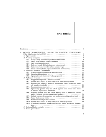 SPIS TREŚCI Przedmowa . . . . . . . . . . . . . . . . . . . . . . . . . . . . . . . . . . . . . . . . . . . . . . . . . . . . . . . . 1. BADANIA DIAGNOSTYCZNE POJAZDU NA HAMOWNI PODWOZIOWEJ (Wiktor Mackiewicz, Andrzej Wolff) . . . . . . . . . . . . . . . . . . . . . . . . . . . . . . . . . . . . 1.1. Wprowadzenie . . . . . . . . . . . . . . . . . . . . . . . . . . . . . . . . . . . . . . . . . . . . . . . 1.2. Podstawy teoretyczne . . . . . . . . . . . . . . . . . . . . . . . . . . . . . . . . . . . . . . . . . . . 1.2.1. Wady i zalety stanowiskowych badań samochodów . . . . . . . . . . . . . . . . 1.2.2. Opory ruchu pojazdu w ruchu ustalonym . . . . . . . . . . . . . . . . . . . . . . . 1.2.3. Opór bezwładności pojazdu . . . . . . . . . . . . . . . . . . . . . . . . . . . . . . . . . 1.2.4. Budowa i zasada działania hamowni podwoziowych . . . . . . . . . . . . . . . . 1.2.5. Cechowanie hamowni i dobór koła zamachowego . . . . . . . . . . . . . . . . . 1.2.6. Zakres i metody badań pojazdu na hamowni podwoziowej . . . . . . . . . . . 1.3. Stanowisko badawcze i obiekt badań . . . . . . . . . . . . . . . . . . . . . . . . . . . . . . . . 1.3.1. Schemat układu dynamometrycznego hamowni . . . . . . . . . . . . . . . . . . . 1.3.2. Hamulec elektrowirowy . . . . . . . . . . . . . . . . . . . . . . . . . . . . . . . . . . . 1.3.3. Oprzyrza˛dowanie hamowni i badanego pojazdu . . . . . . . . . . . . . . . . . . . 1.4. Wykonanie ćwiczenia . . . . . . . . . . . . . . . . . . . . . . . . . . . . . . . . . . . . . . . . . . . 1.4.1. Przygotowanie pojazdu i hamowni do badań . . . . . . . . . . . . . . . . . . . . . 1.4.2. Badanie pracy silnika na biegu jałowym w stanie nierozgrzanym . . . . . . . 1.4.3. Rozgrzewanie silnika i hamowni podwoziowej (przy zachowaniu stałej siły nape˛dowej pojazdu) . . . . . . . . . . . . . . . . . . . . . . . . . . . . . . . . . . . 1.4.4. Symulacja jazdy drogowej . . . . . . . . . . . . . . . . . . . . . . . . . . . . . . . . . . 1.4.5. Dynamiczny pomiar mocy na kołach pojazdu oraz pomiar strat mocy w układzie pojazd rolki stanowiska . . . . . . . . . . . . . . . . . . . . . . . . . . . 1.4.6. Statyczny pomiar mocy na kołach pojazdu (wraz z pomiarami zużycia paliwa i ste˛żenia toksycznych zwia˛zków spalin) . . . . . . . . . . . . . . . . . . . 1.4.7. Badanie wybranych parametrów przy zachowaniu stałej pre˛dkości jazdy . . 1.4.8. Ocena elastyczności silnika . . . . . . . . . . . . . . . . . . . . . . . . . . . . . . . . . 1.4.9. Kontrola wskazań pre˛dkościomierza . . . . . . . . . . . . . . . . . . . . . . . . . . . 1.4.10. Badanie pracy silnika na biegu jałowym w stanie rozgrzanym . . . . . . . . . 1.4.11. Wizualizacja działania układu zapłonowego silnika na ekranie diagnoskopu . . . . . . . . . . . . . . . . . . . . . . . . . . . . . . . . . . . . . . . . . . . . . . . . . 1.5. Dyskusja błe˛dów pomiarów . . . . . . . . . . . . . . . . . . . . . . . . . . . . . . . . . . . . . . 1.6. Zakres sprawozdania . . . . . . . . . . . . . . . . . . . . . . . . . . . . . . . . . . . . . . . . . . . 8 9 9 9 9 10 11 12 14 17 22 22 23 26 26 27 27 28 28 29 31 33 33 34 35 35 35 36 3 Przykładowe pytania . . . . . . . . Literatura, materiały źródłowe . . Zała˛cznik 1.1. Karta pomiarowa łach pojazdu . . . .... .... wraz .... ........................... ........................... z przykładowym wykresem pomiaru ........................... . . . . . . . . . . 36 . . . . . . . . . . 37 mocy na ko. . . . . . . . . . 38 2. WYKORZYSTANIE SYSTEMU DIAGNOSTYKI POKŁADOWEJ OBD DO BADAŃ POJAZDÓW (Jacek Drobiszewski, Andrzej Wolff) . . . . . . . . . . . . . . . . . . . . . . . . . . 2.1. Wprowadzenie . . . . . . . . . . . . . . . . . . . . . . . . . . . . . . . . . . . . . . . . . . . . . . . 2.2. Podstawy teoretyczne . . . . . . . . . . . . . . . . . . . . . . . . . . . . . . . . . . . . . . . . . . . 2.2.1. Ogólne przedstawienie systemu diagnostyki pokładowej standardu OBD . . 2.2.2. System wtrysku benzyny „Motronic” . . . . . . . . . . . . . . . . . . . . . . . . . . 2.2.3. Wybrane procedury kontrolne realizowane przez układy OBD II/EOBD . . 2.2.4. Wiarygodność układu samodiagnostyki . . . . . . . . . . . . . . . . . . . . . . . . . 2.2.5. Diagnozowanie układu przeciwblokuja˛cego kół pojazdu (ABS) . . . . . . . . 2.3. Stanowisko pomiarowe i obiekt badań . . . . . . . . . . . . . . . . . . . . . . . . . . . . . . . 2.3.1. Tester diagnostyczny KTS 650 . . . . . . . . . . . . . . . . . . . . . . . . . . . . . . 2.3.2. Tryby pracy testera diagnostycznego . . . . . . . . . . . . . . . . . . . . . . . . . . 2.3.3. Badany pojazd . . . . . . . . . . . . . . . . . . . . . . . . . . . . . . . . . . . . . . . . . . 2.4. Wykonanie ćwiczenia . . . . . . . . . . . . . . . . . . . . . . . . . . . . . . . . . . . . . . . . . . . 2.5. Zakres sprawozdania . . . . . . . . . . . . . . . . . . . . . . . . . . . . . . . . . . . . . . . . . . . Przykładowe pytania . . . . . . . . . . . . . . . . . . . . . . . . . . . . . . . . . . . . . . . . . . . . . . . Literatura, materiały źródłowe . . . . . . . . . . . . . . . . . . . . . . . . . . . . . . . . . . . . . . . . 3. BADANIE SILNIKA SPALINOWEGO Z ZAPŁONEM ISKROWYM W STANIE NIEOBCIA˛ŻONYM (Jacek Drobiszewski, Wiktor Mackiewicz, Andrzej Wolff) . . . . . . 3.1. Wprowadzenie . . . . . . . . . . . . . . . . . . . . . . . . . . . . . . . . . . . . . . . . . . . . . . . 3.2. Podstawy teoretyczne . . . . . . . . . . . . . . . . . . . . . . . . . . . . . . . . . . . . . . . . . . . 3.2.1. Powietrzna próba szczelności cylindrów . . . . . . . . . . . . . . . . . . . . . . . . 3.2.2. Pomiar ciśnienia w końcu suwu spre˛żania . . . . . . . . . . . . . . . . . . . . . . . 3.2.3. Pomiar podciśnienia w przewodzie dolotowym . . . . . . . . . . . . . . . . . . . 3.2.4. Ocena szczelności cylindrów metoda˛ analizy nate˛żenia pra˛du rozruchowego 3.2.5. Próba porównania cylindrów . . . . . . . . . .