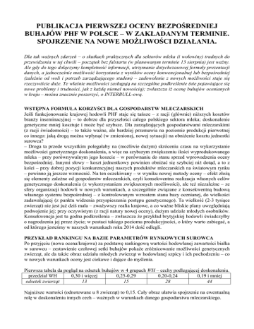 publikacja pierwszej oceny bezpośredniej buhajów phf w polsce