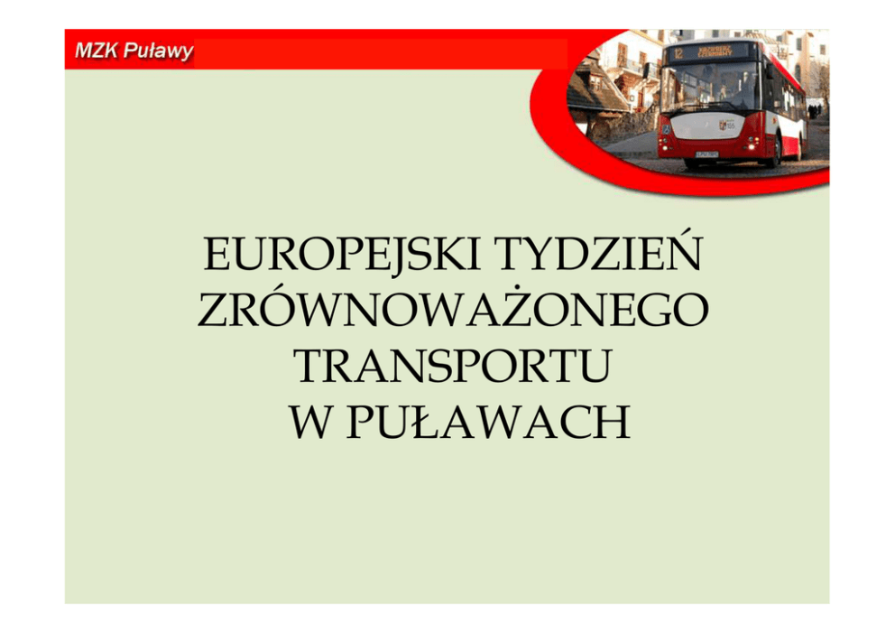 EUROPEJSKI TYDZIEŃ ZRÓWNOWAśONEGO TRANSPORTU W
