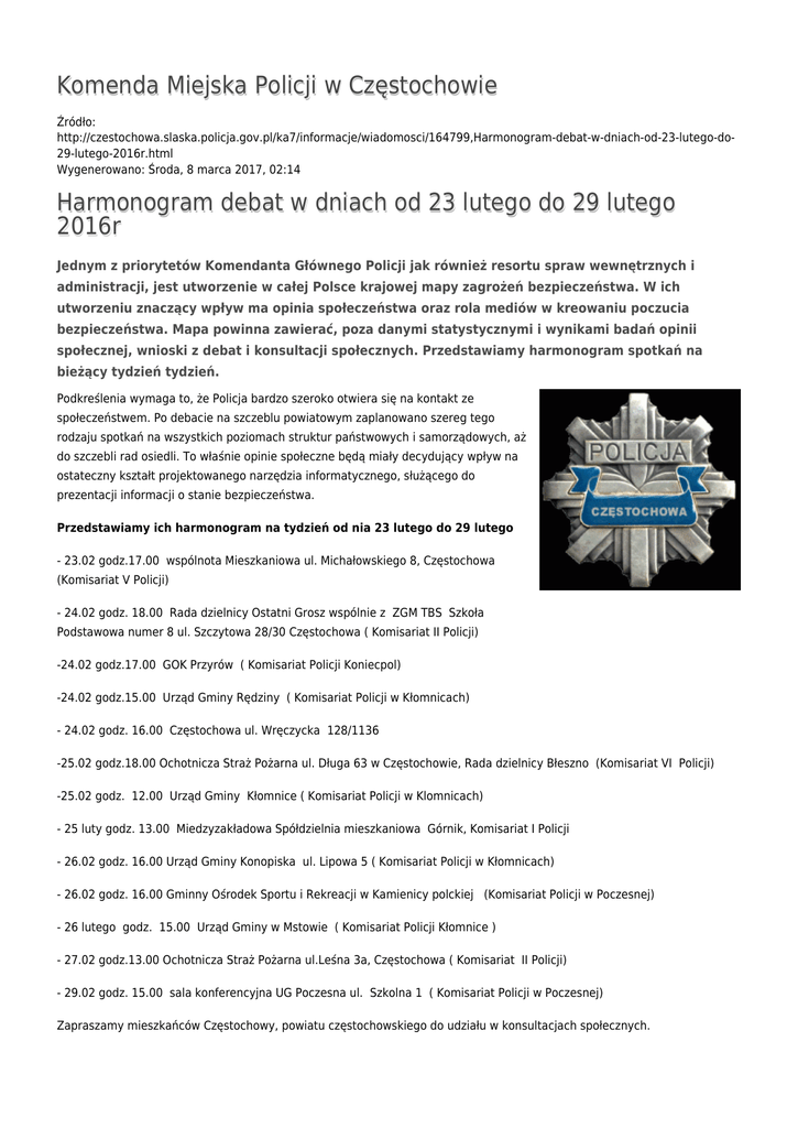 Komenda Miejska Policji w Częstochowie Harmonogram debat w