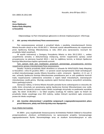 Koszalin, dnia 09 lipca 2012 r. OA-I.0003.35.2012.MK