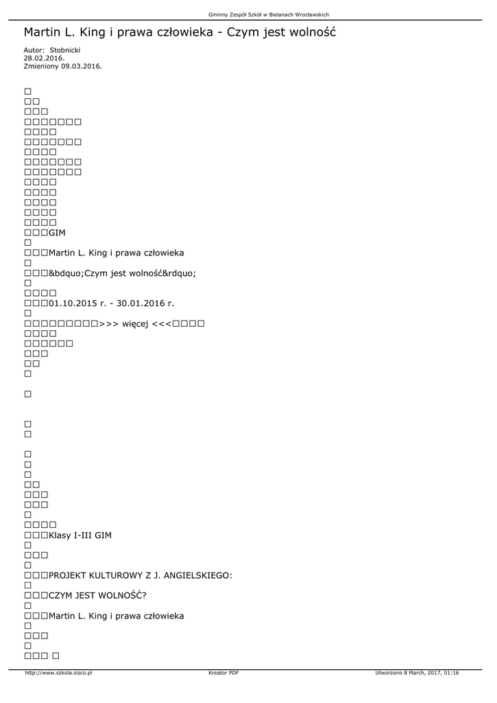 angielskiego CZYM JEST WOLNOŚĆ? M. L. KING I PRAWA CZŁOWIEKA było: