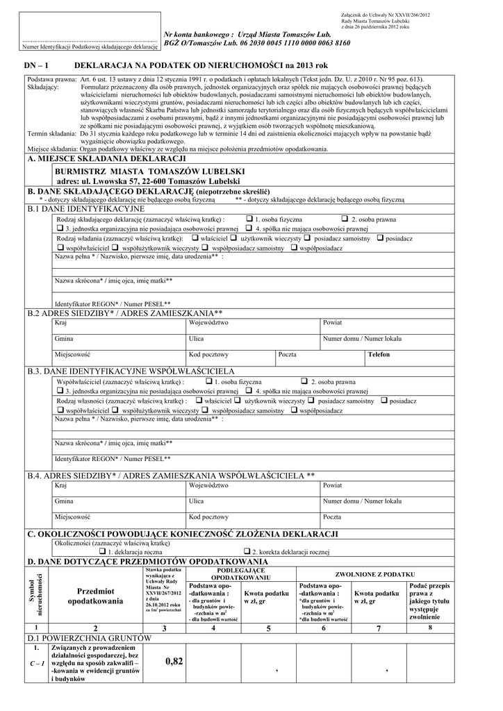 1 DEKLARACJA NA PODATEK OD NIERUCHOMOŚCI na 2013 rok