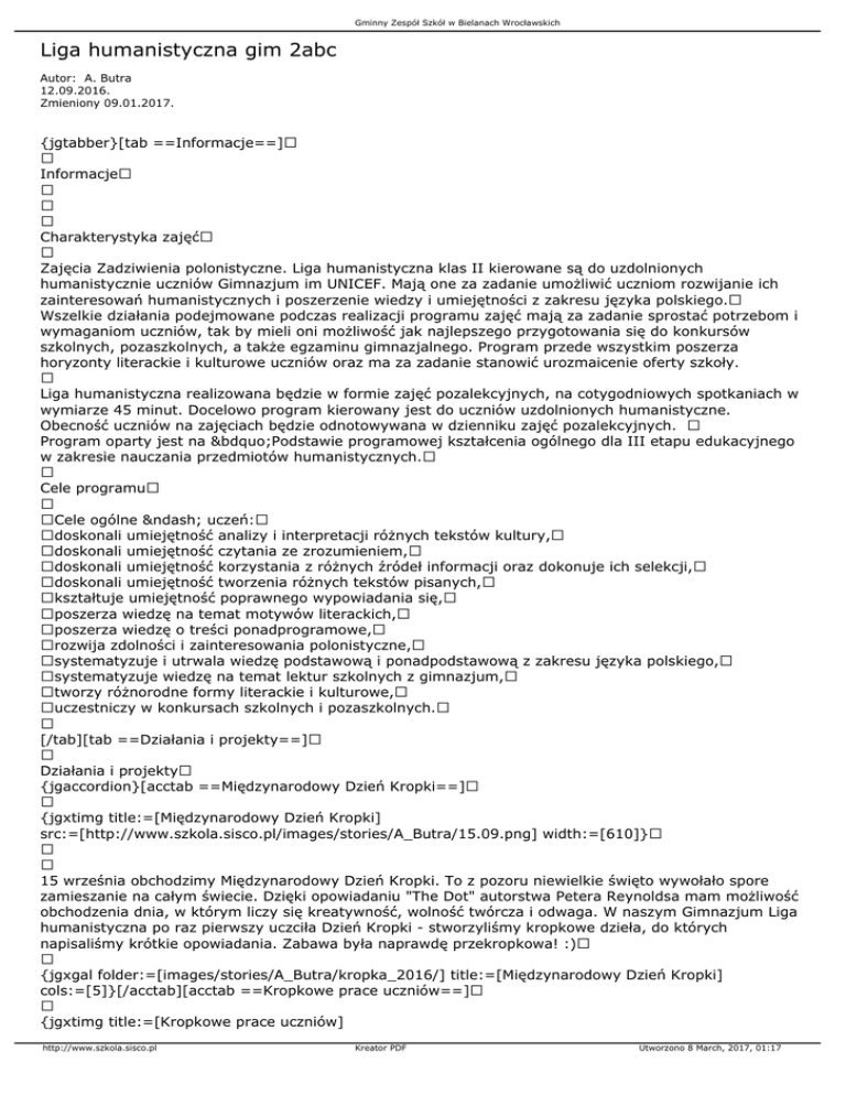 Liga humanistyczna gim 2abc - Gminny Zespół Szkół w Bielanach
