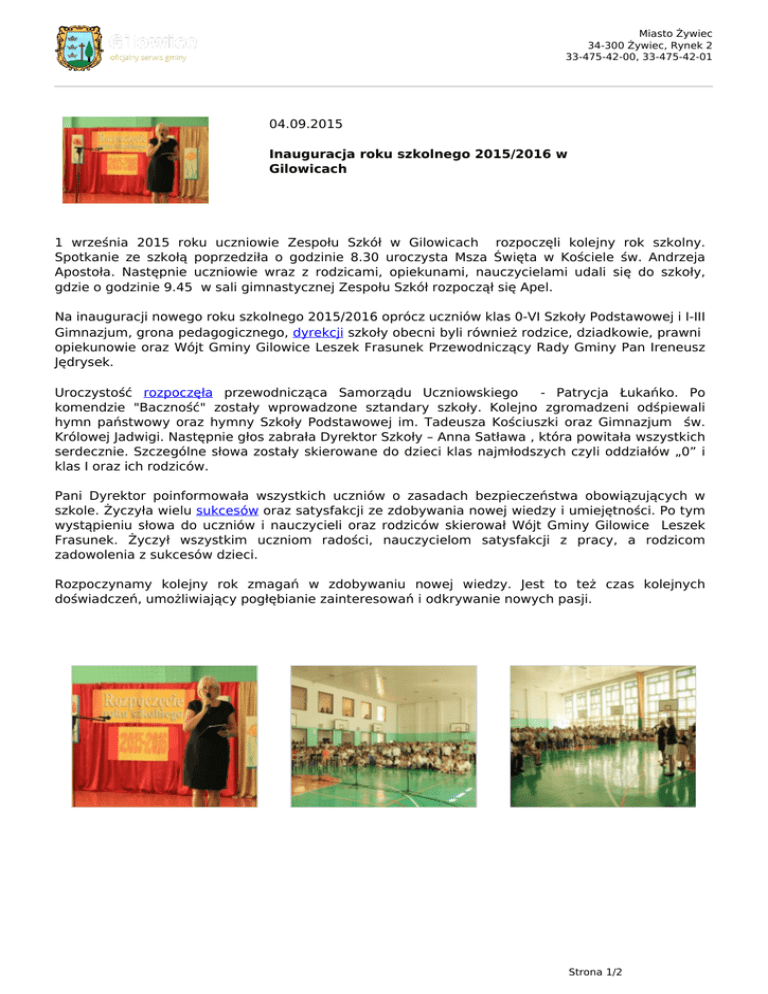 Inauguracja roku szkolnego 2015/2016 w Gilowicach