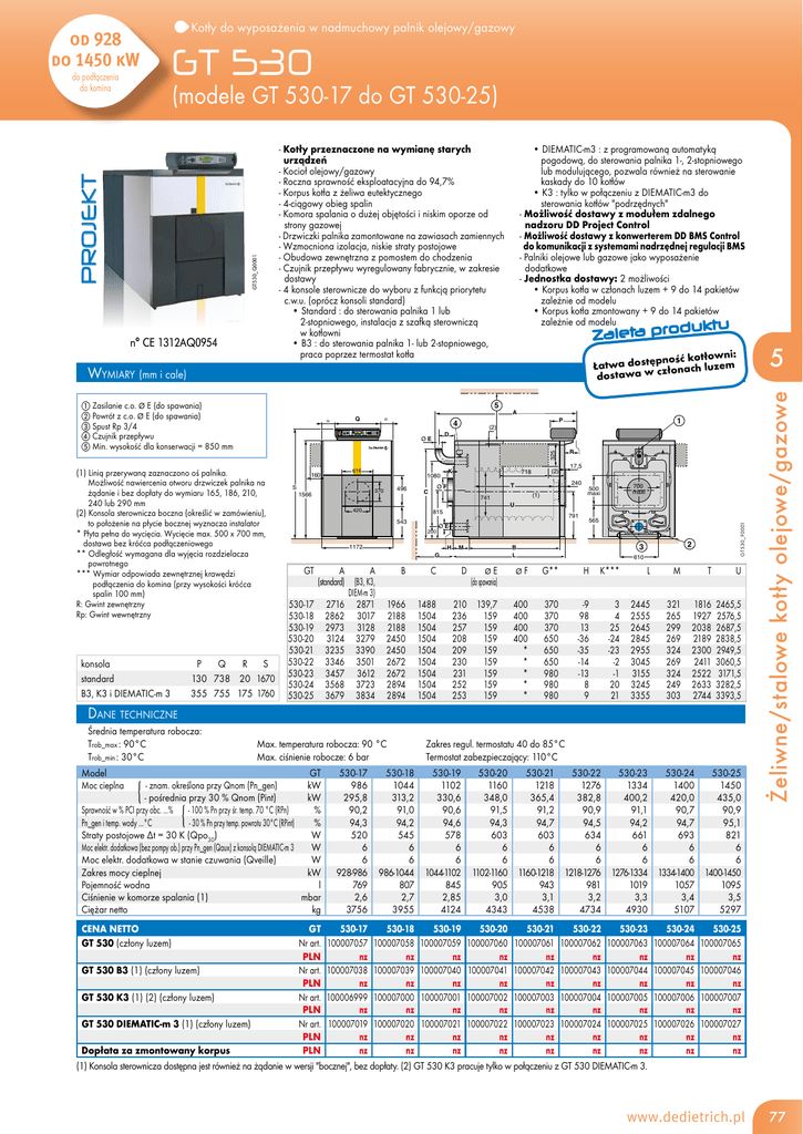 (1) Konsola sterownicza dostępna jest również na żądanie w wersji "bocznej", bez dopłaty. (2) GT 530 K3 pracuje tylko w połączeniu z GT 530 DIEMATIC-m 3.