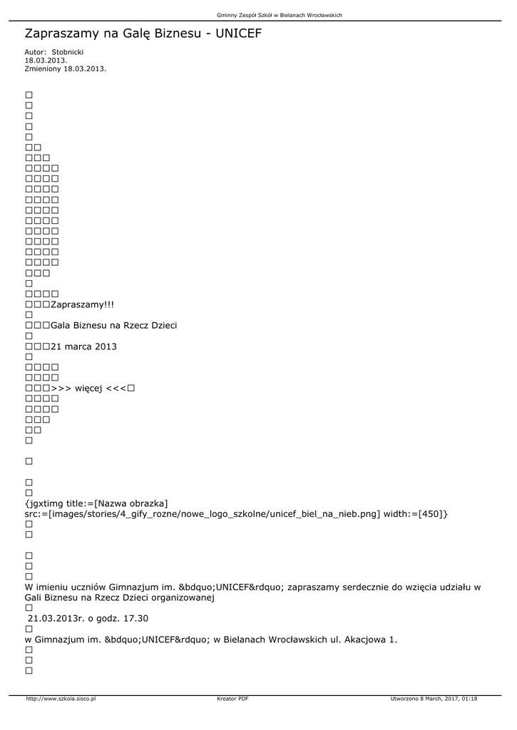 W imieniu uczniów Gimnazjum im. „UNICEF” zapraszamy serdecznie do wzięcia udziału w