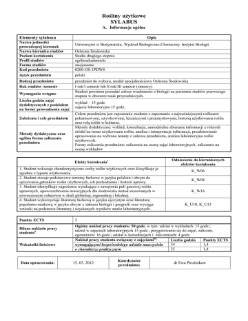 Rośliny użytkowe SYLABUS - BIOL-CHEM UWB