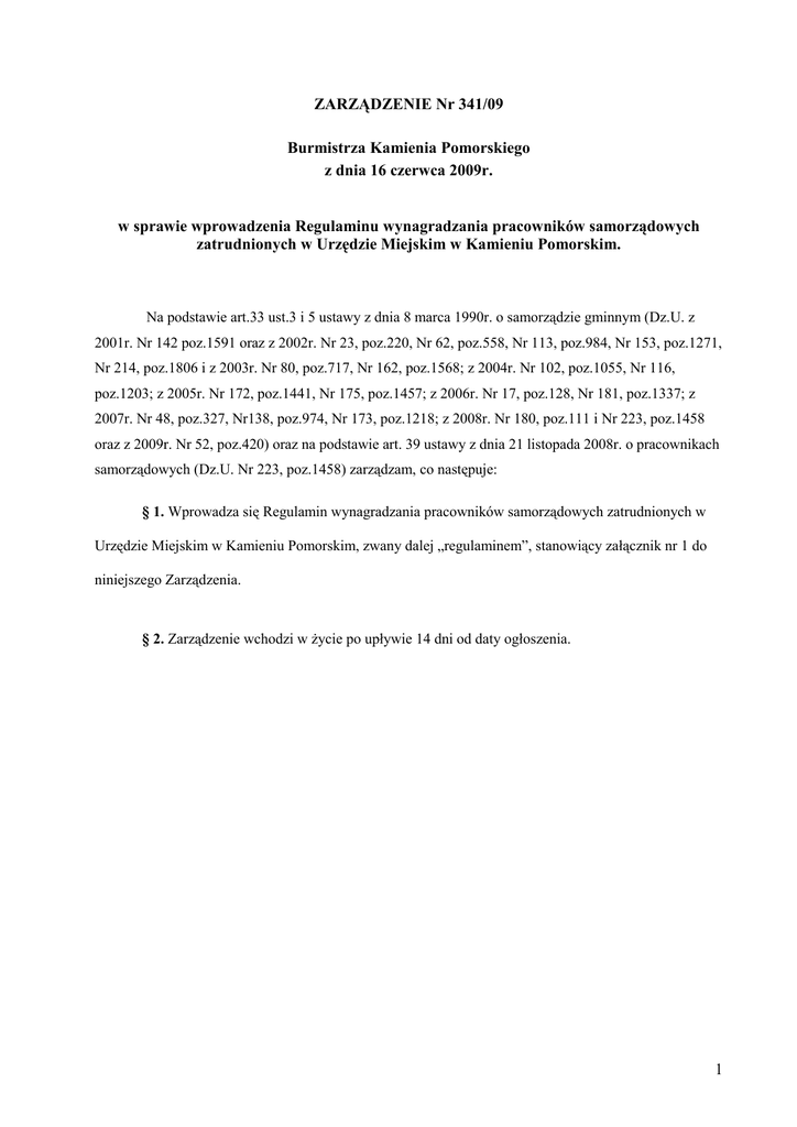 Zarządzenie 341/09 - Biuletyn Informacji Publicznej Urzędu